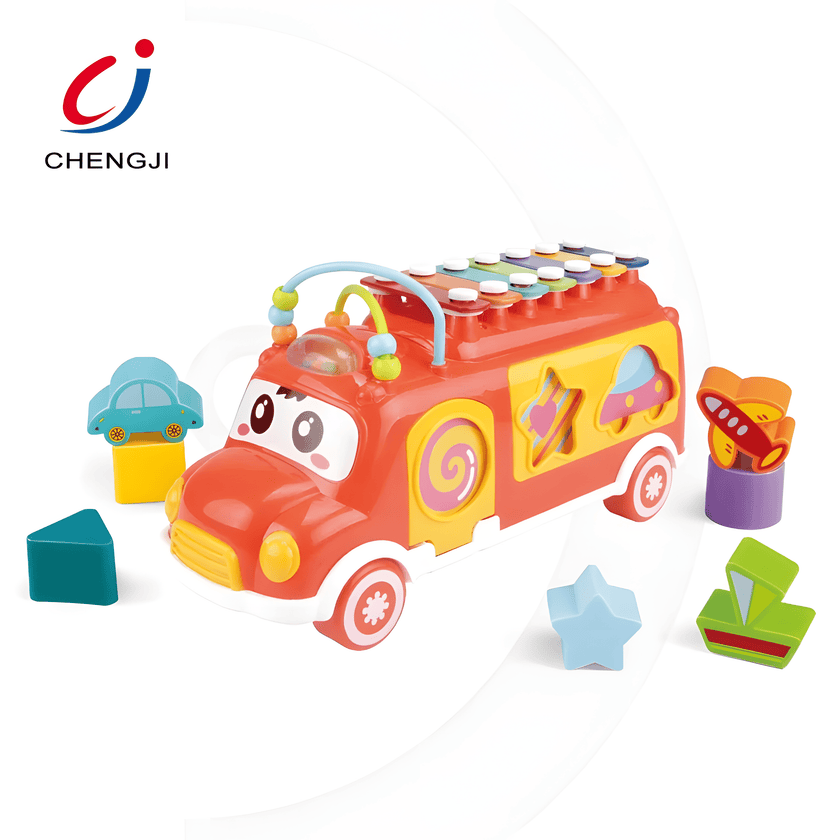 Autobús Didáctico 3 en 1 - Xilófono, Encaje de Figuras y Juguete de Arrastre